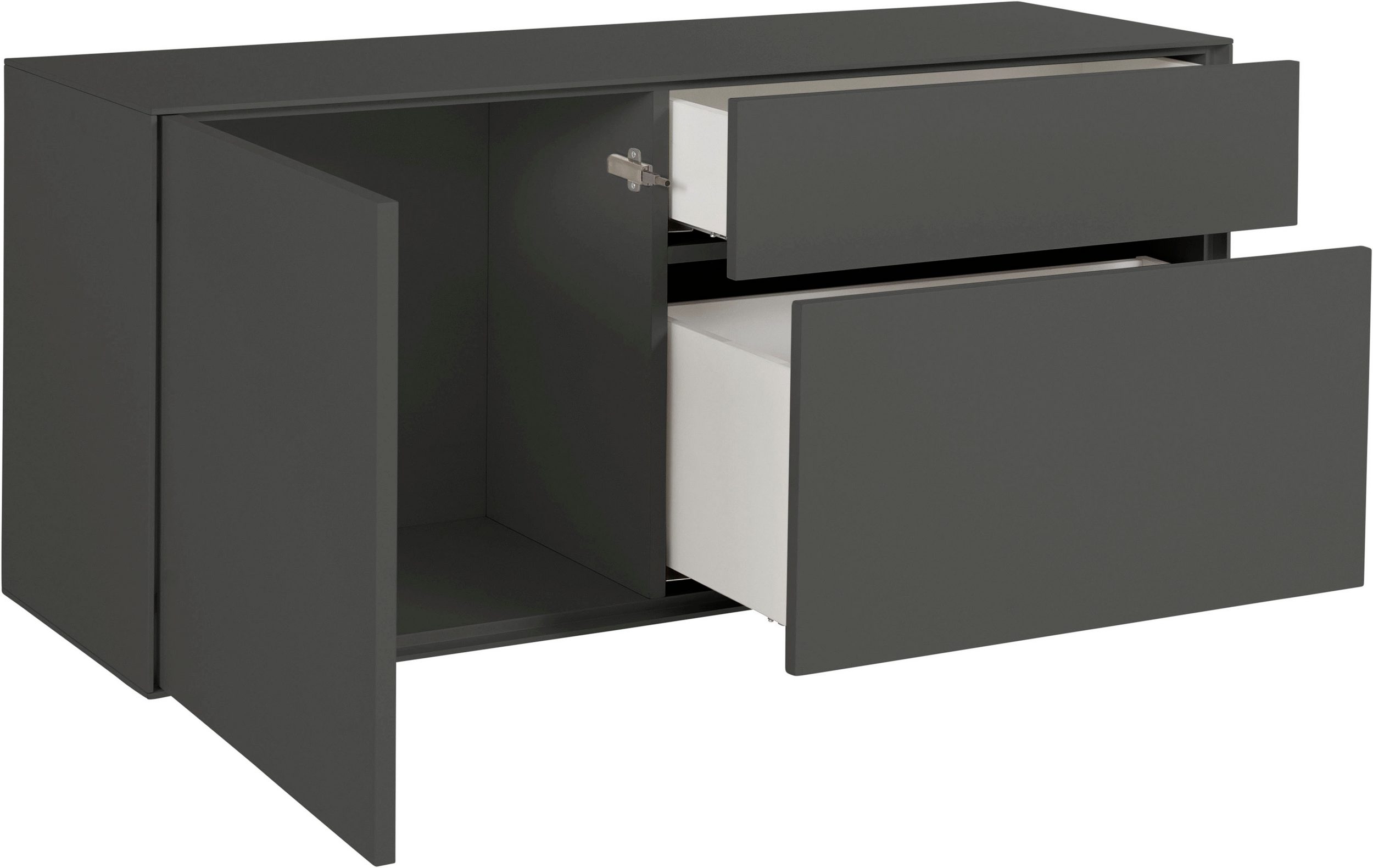 Elegancka, wszechstronna i wykonana z płyty MDF: To tylko kilka słów opisujących nowoczesną szafkę pod telewizor LeGer Home by Lena Gercke z funkcją otwierania push-to-open. Wyraźne linie i konstrukcja bez uchwytów charakteryzują elegancki wygląd. Oprócz atrakcyjnego wyglądu, kredens zachwyca koncepcją przestrzeni do przechowywania. Obejmuje ona dwie szuflady o różnych rozmiarach i element szafki z drzwiami na zawiasach. Na szerokiej półce można wyeksponować przedmioty dekoracyjne i nadać indywidualny charakter każdemu pomieszczeniu. Do produkcji wykorzystano materiał drewnopochodny z certyfikatem FSC®. Nowoczesna niska szafka LeGer Home by Lena Gercke z funkcją push-to-open może być używana w całym salonie i gabinecie