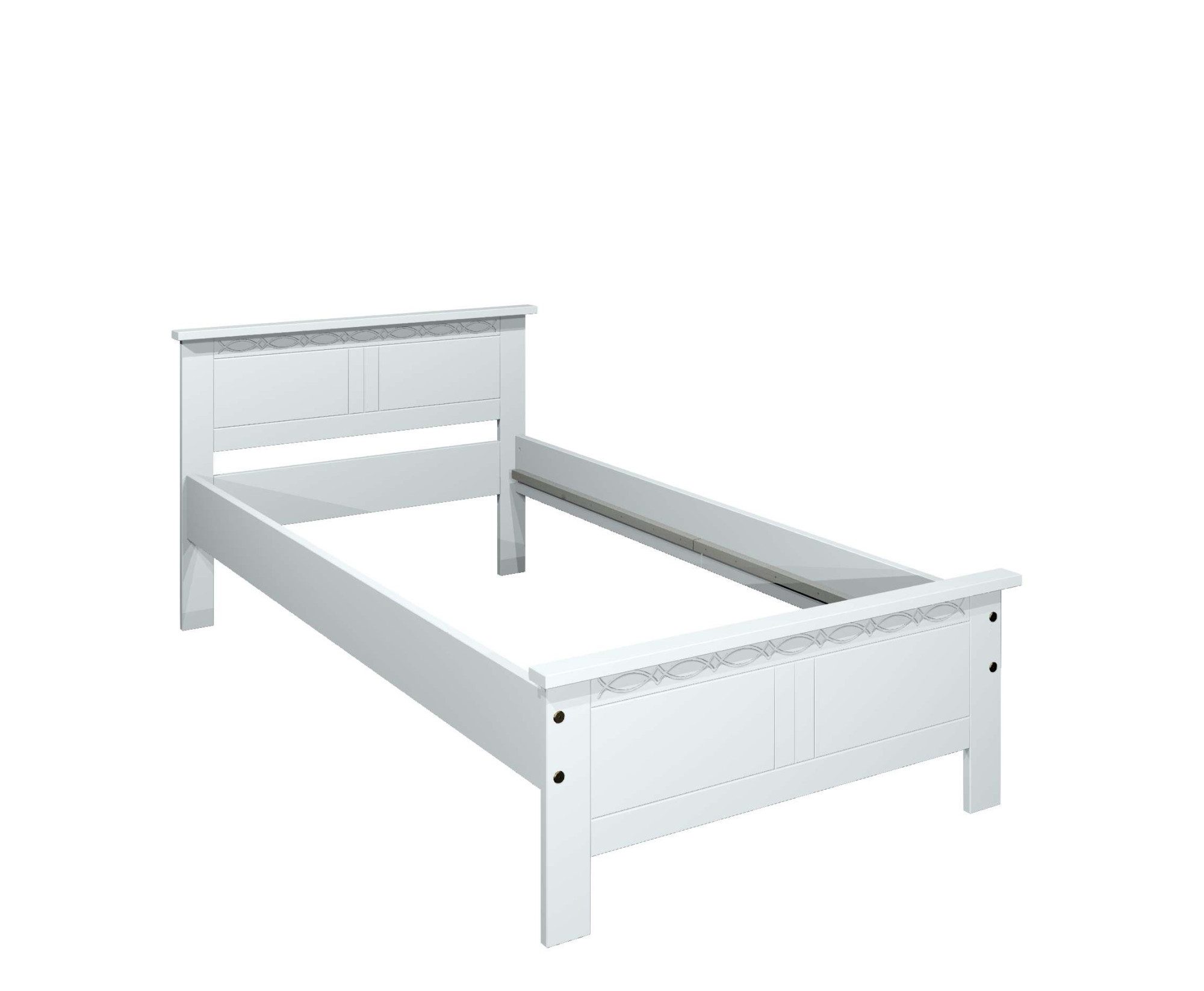 Biała sosnowa rama łóżka 90×200 cm w stylu rustykalnym, z frezowaniem