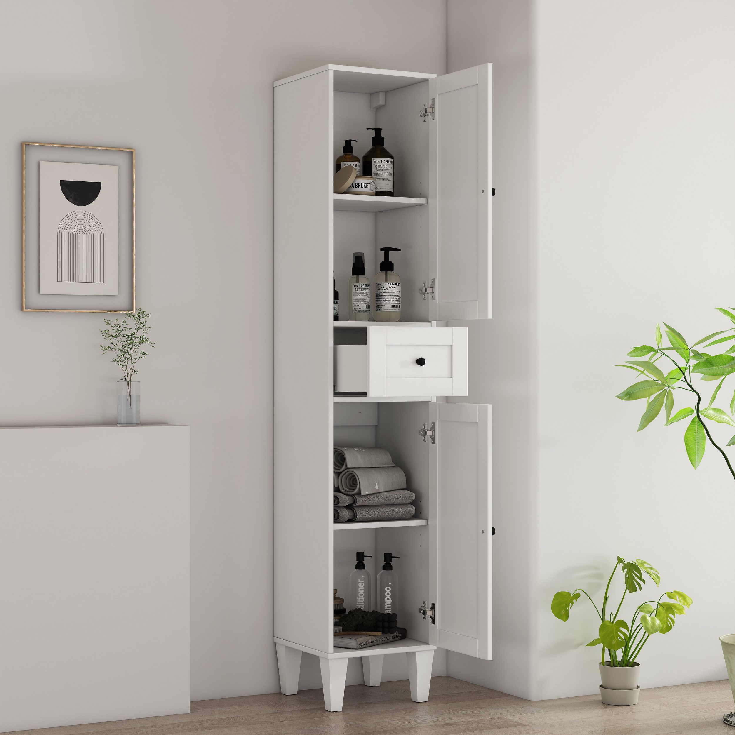 Dzięki kompaktowym wymiarom (35 x 35 x 180 cm) ta wąska szafka idealnie pasuje do łazienek, kuchni, korytarzy i innych ciasnych przestrzeni.