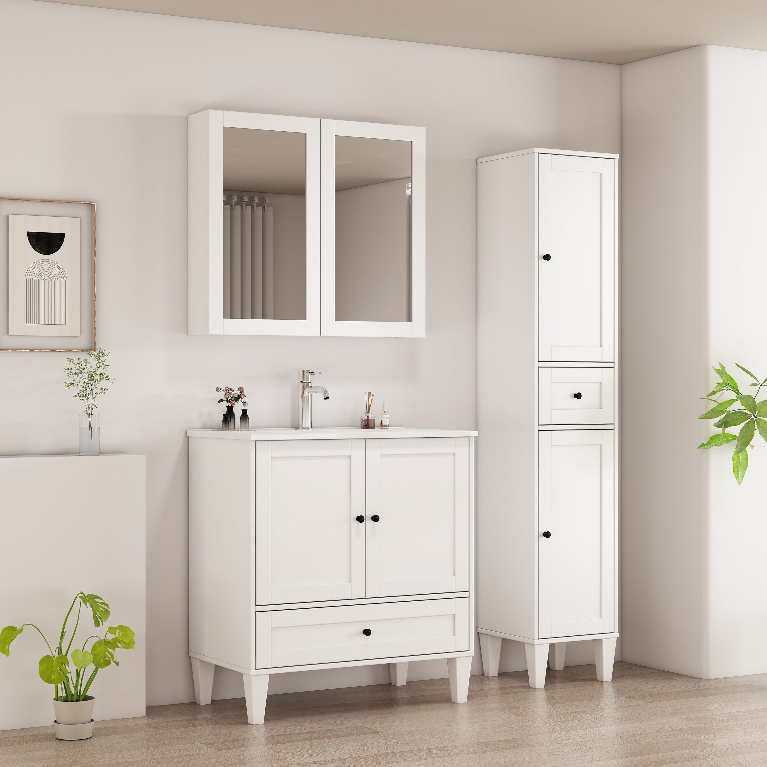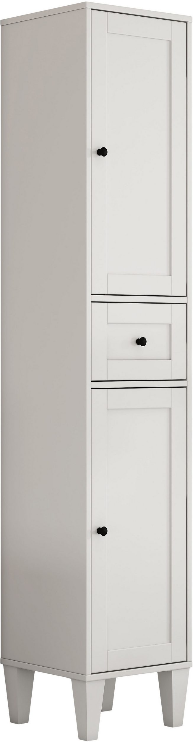 Biała wysoka szafka łazienkowa w eleganckim stylu