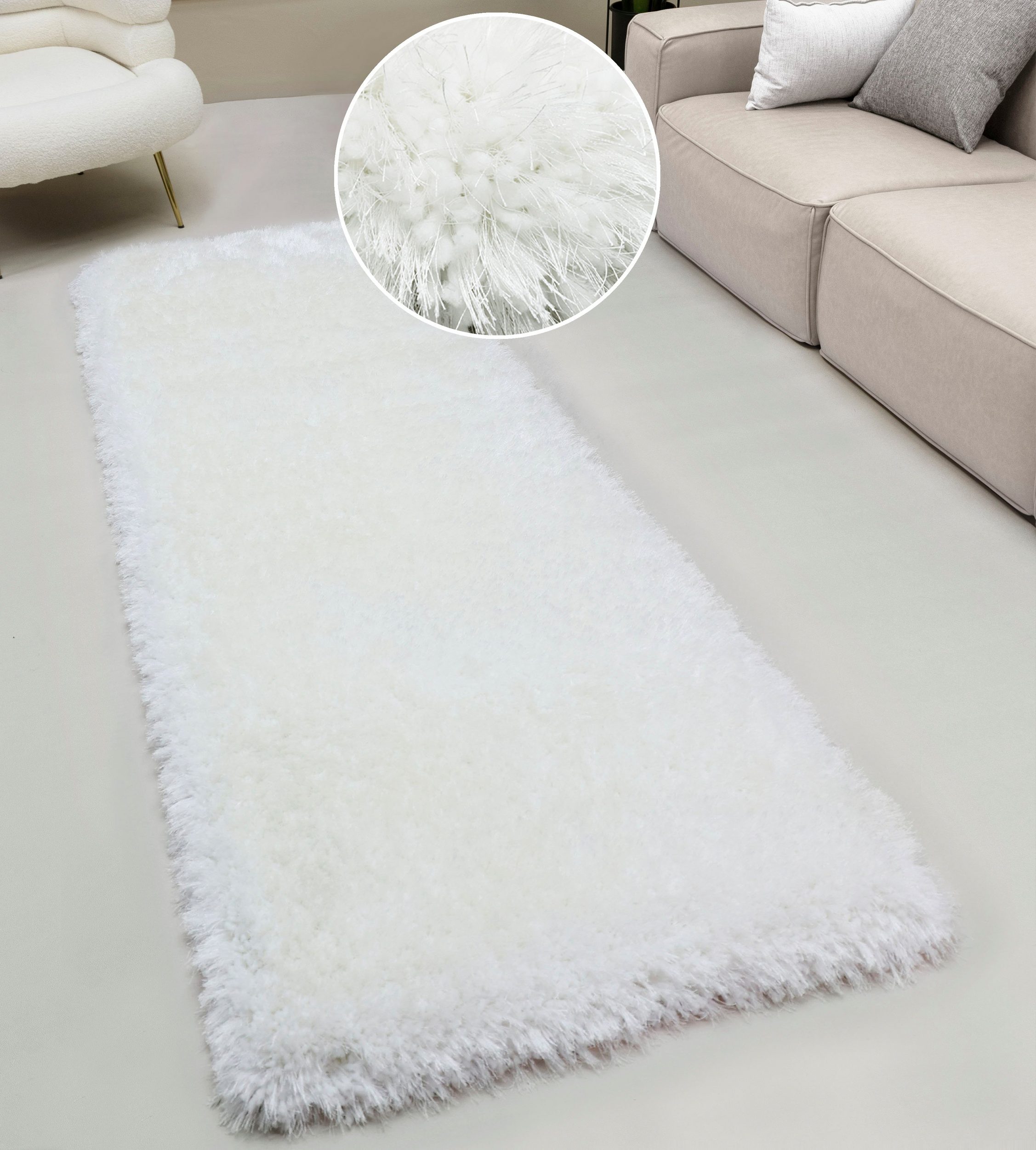 Biały puszysty i miękki dywan 80×250 cm z gęstym włosiem