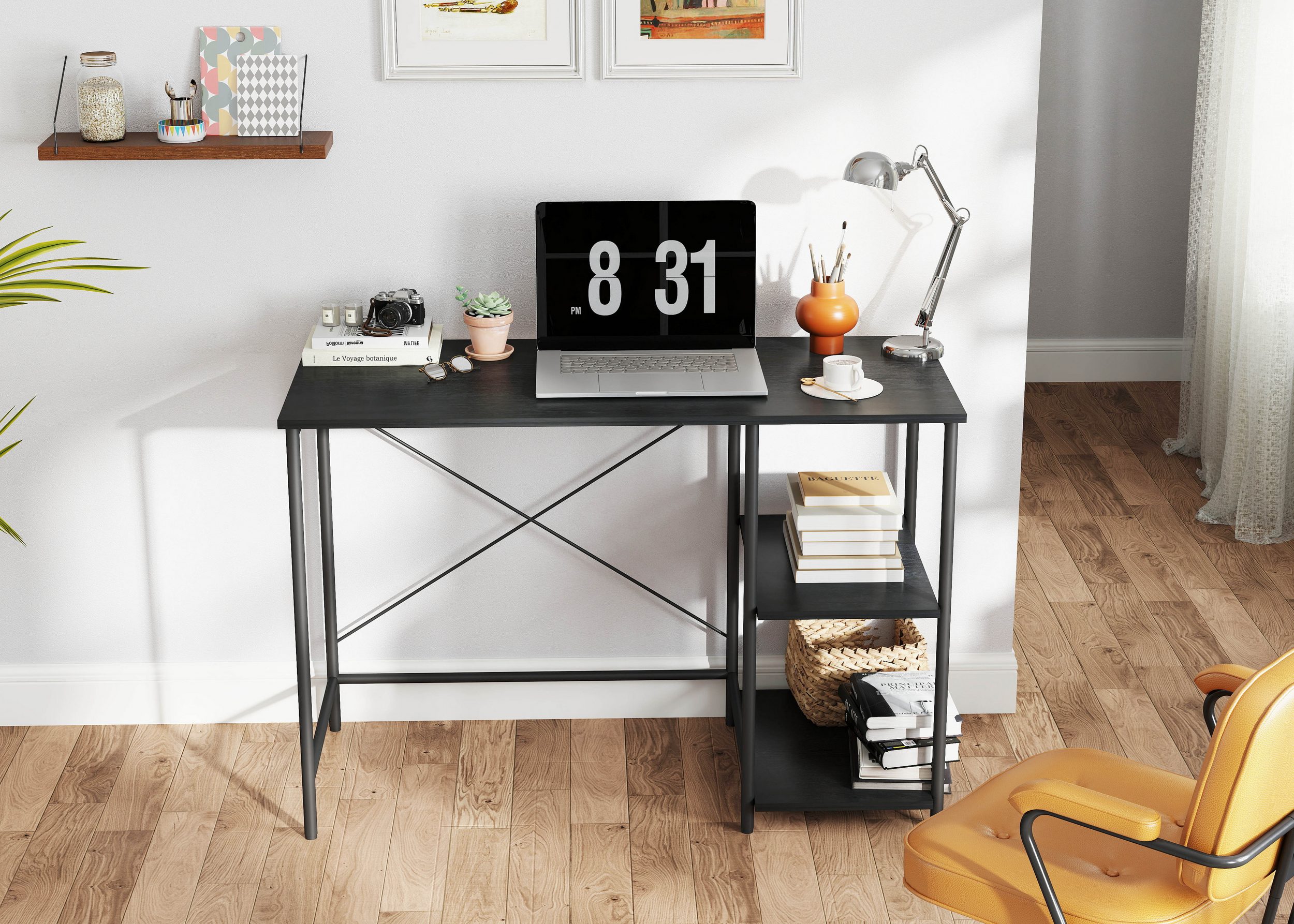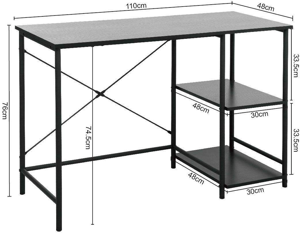 Czarne biurko INOSIGN z otwartymi półkami z boku