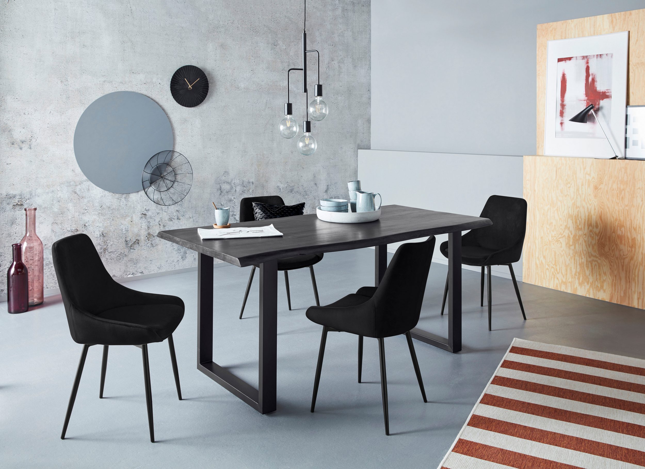To krzesło do jadalni „Niam” od INOSIGN to doskonały fundament do stworzenia przytulnej i nastrojowej atmosfery w jadalni. Nawet podczas dłuższego siedzenia przy stole, pozostaje ono wygodne, ponieważ zarówno siedzisko, jak i oparcie są wygodnie wyściełane. Maksymalne obciążenie wynosi około 120 kilogramów. Lśniące, welurowe pokrycie prezentuje się elegancko i jest wyjątkowo miękkie podczas siedzenia.