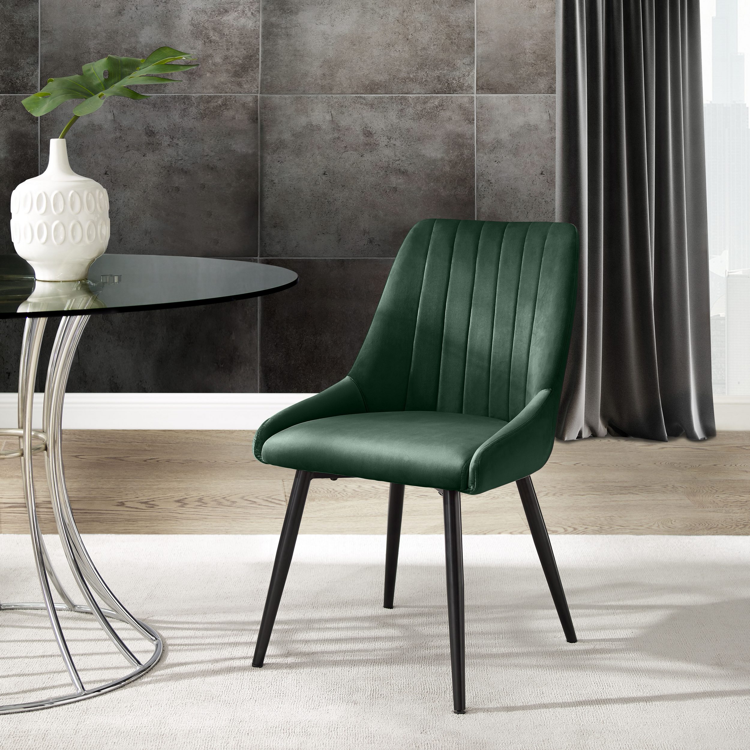 Eleganckie zielone krzesła z weluru, z czarnymi nogami – 2 sztuki