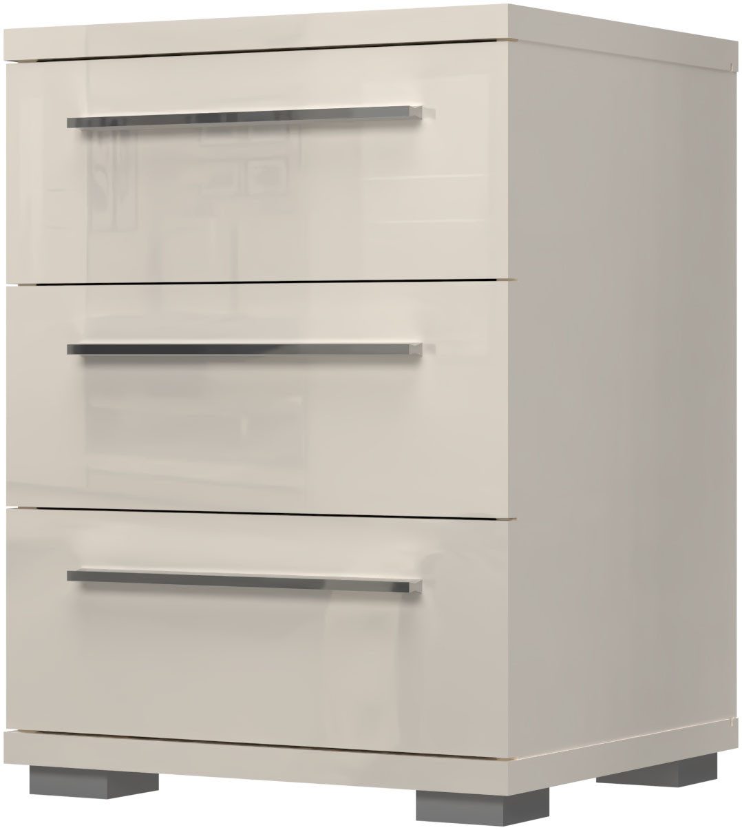 Mała beżowa komoda lub szafka nocna w wysokim połysku