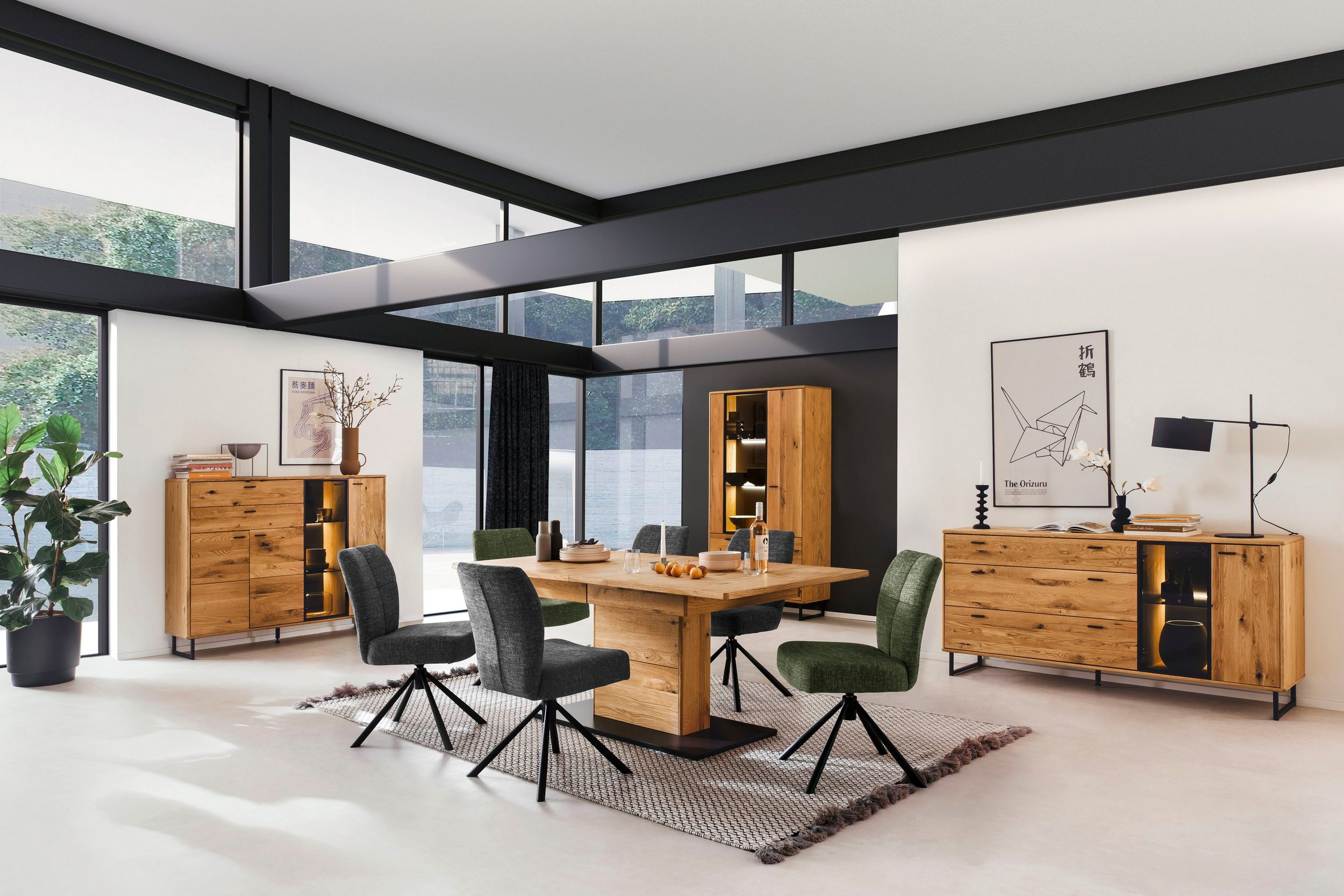 Z tym krzesłem do jadalni „KEA” od MCA furniture jesteś o krok bliżej do atmosfery dobrego samopoczucia, jak w ulubionej restauracji. Bez konieczności podnoszenia i przesuwania krzesła, możesz łatwo zająć miejsce dzięki funkcji obrotowej. Jest to szczególnie praktyczne w nieco mniejszych pomieszczeniach. Komfort jest tutaj ważnym kryterium: podobnie jak siedzisko, oparcie jest również tapicerowane. Twój nowy mebel może utrzymać do 120 kilogramów. Metalowa rama jest solidna i zapewnia niezbędną stabilność.