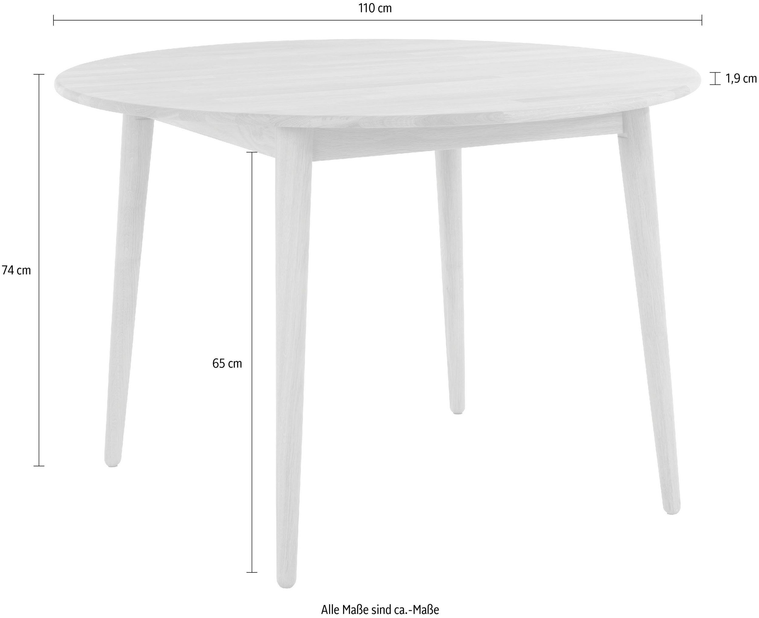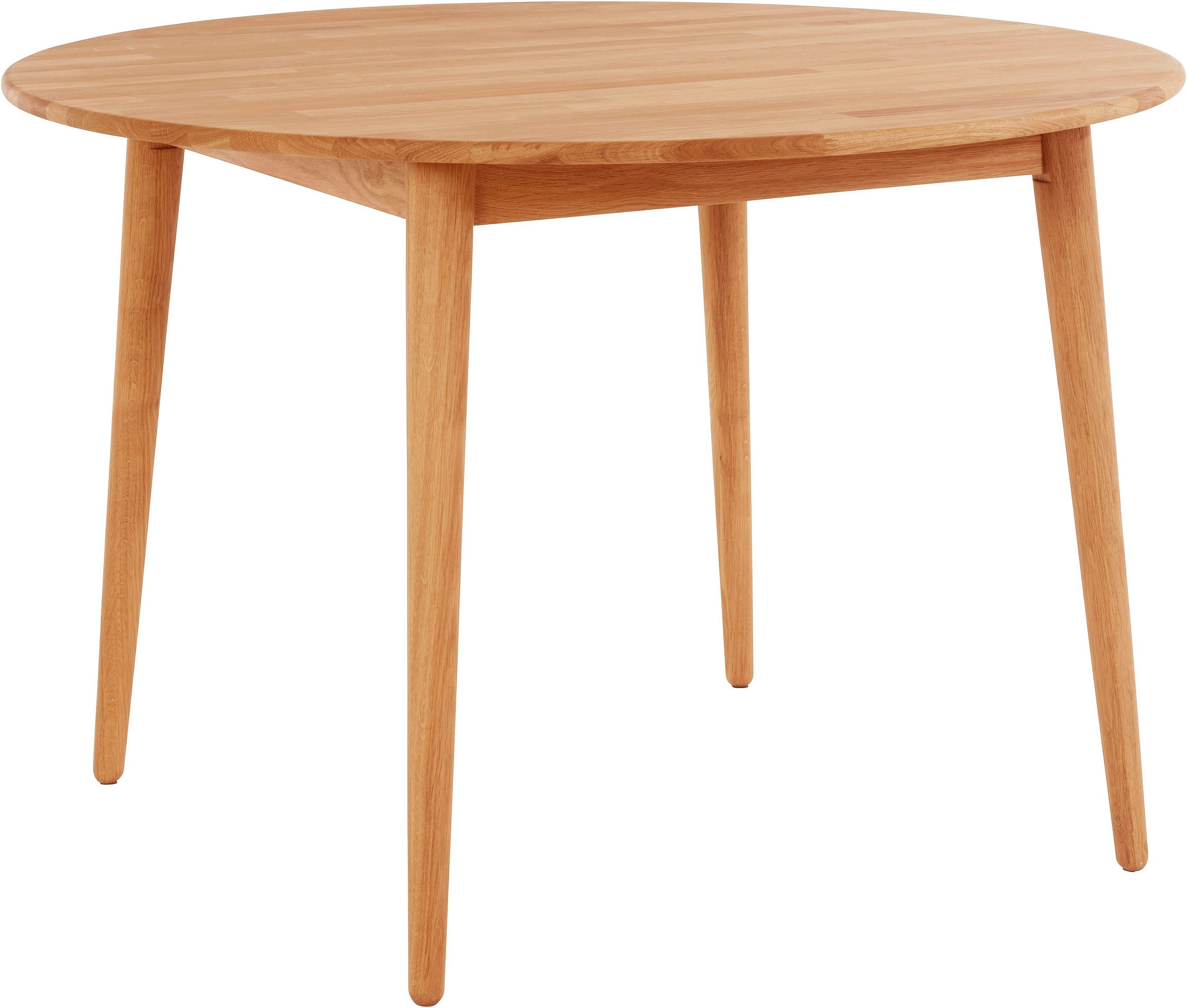 Elegancki, wszechstronny i łatwy w pielęgnacji: stylowo zaprojektowany stół do jadalni »Toarp« firmy andas w ponadczasowym stylu skandynawskim jest atutem Twojego wnętrza. Obszerny stół z okrągłym blatem zachwyca wizualnie doskonale widoczną strukturą drewna dębowego. Wyraźne linie i cztery zwężające się nóżki meblowe charakteryzują wygląd mebli do jadalni. Lite drewno użyte do produkcji pochodzi z produkcji posiadającej certyfikat FSC®. Ekstrawagancki stół do jadalni ma łatwe w pielęgnacji powierzchnie i można go wyczyścić w mgnieniu oka. Stylowo zaprojektowany stół jadalny »Toarp« firmy andas w ponadczasowym stylu skandynawskim jest wysokiej jakości.