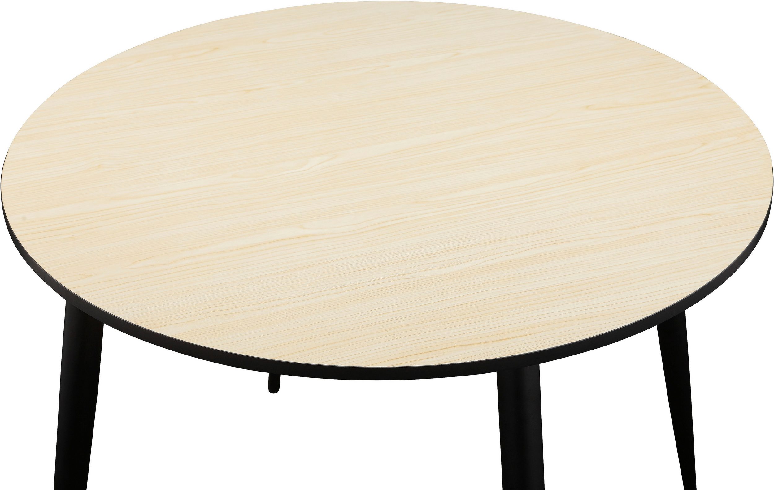 Okrągły stół o średnicy 100cm z czarnymi nogami i blatem w kolorze dębowym
