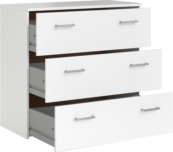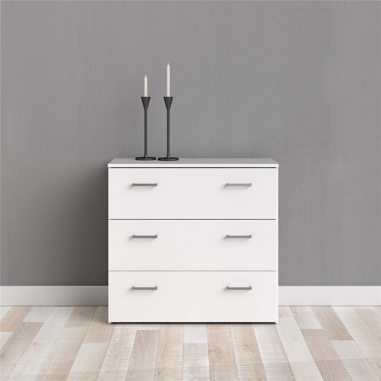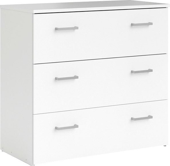 Prosta biała komoda z trzema szufladami