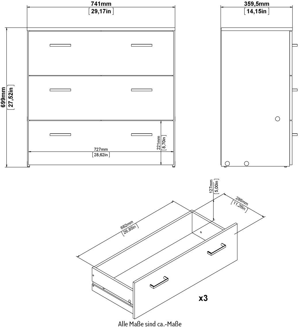 Stylowa, funkcjonalna i wyprodukowana w sposób zrównoważony: Te atrybuty doskonale opisują wysokiej jakości, minimalistyczny design komody INOSIGN. Wyraźne linie i uchwyty w kolorze srebrnym charakteryzują jej wygląd. Koncepcja przestrzeni do przechowywania obejmuje trzy pojemne szuflady. Do produkcji użyto materiału drewnopochodnego z certyfikatem FSC®. Wysokiej jakości komoda INOSIGN o minimalistycznym designie nadaje się również do małych pomieszczeń.