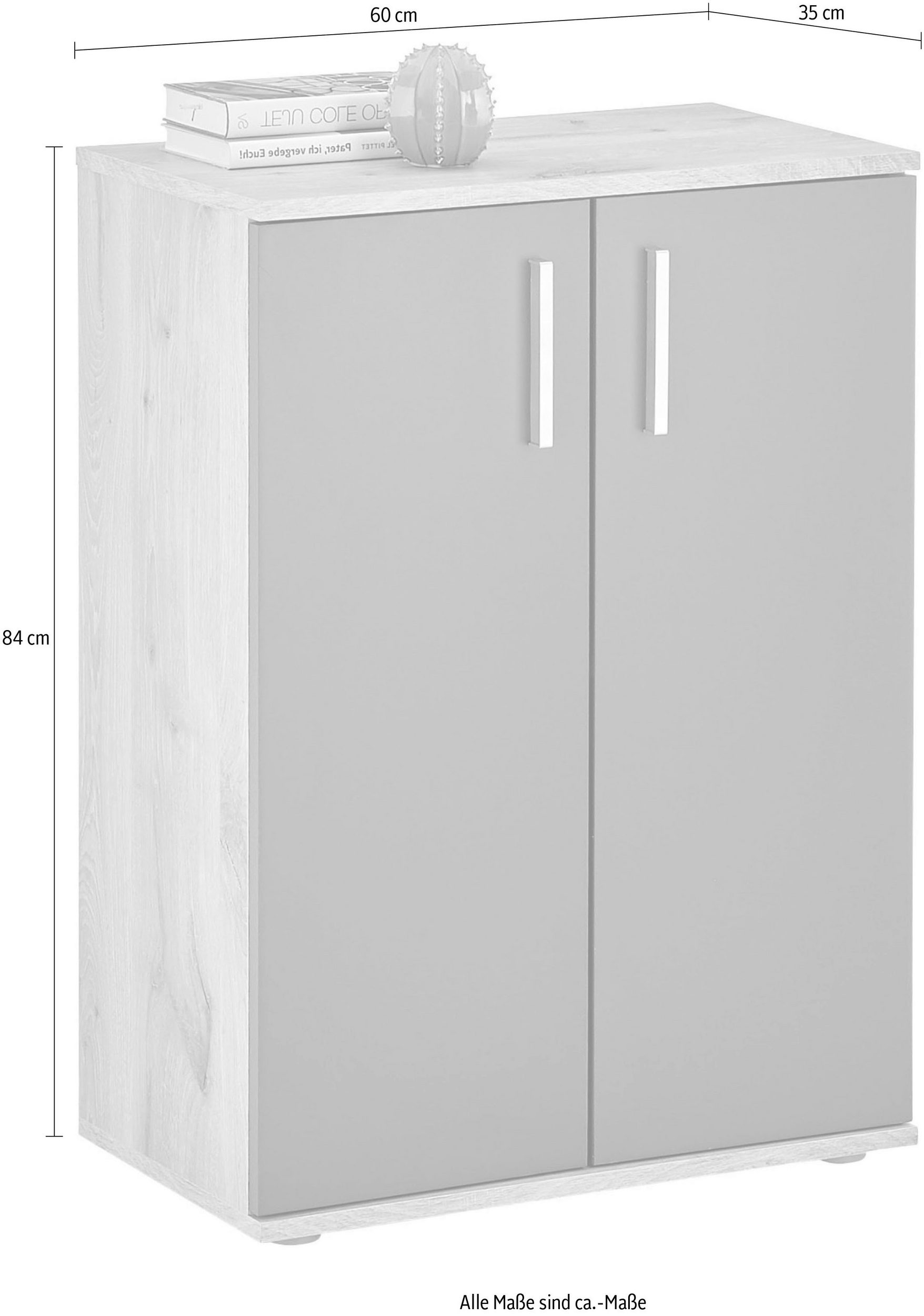 Metalowe uchwyty w kolorze srebrnym, wymiary WxHxD 60x84x35 cm