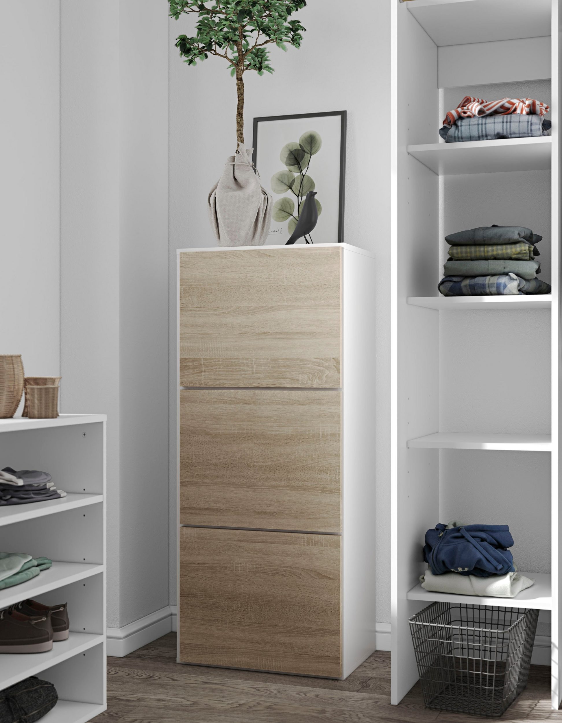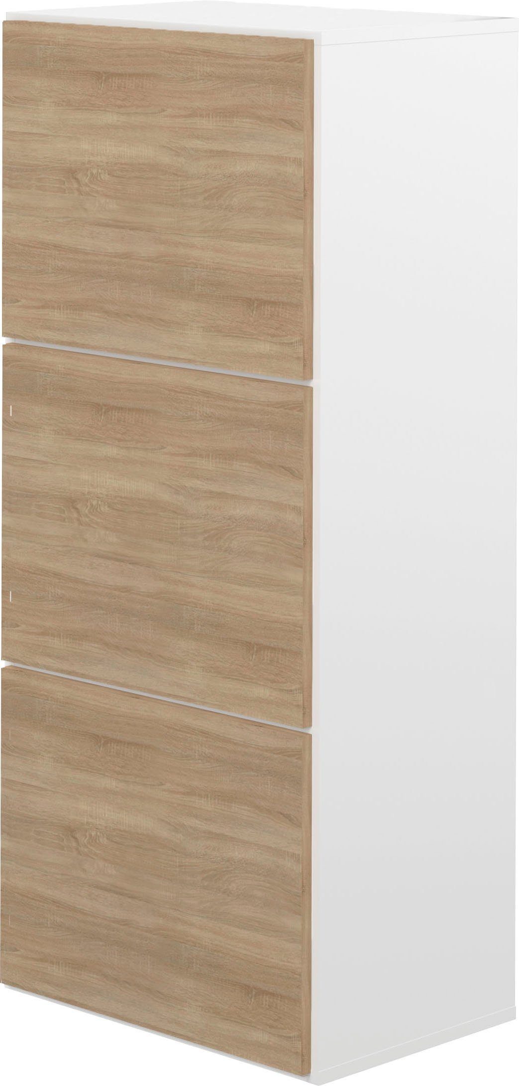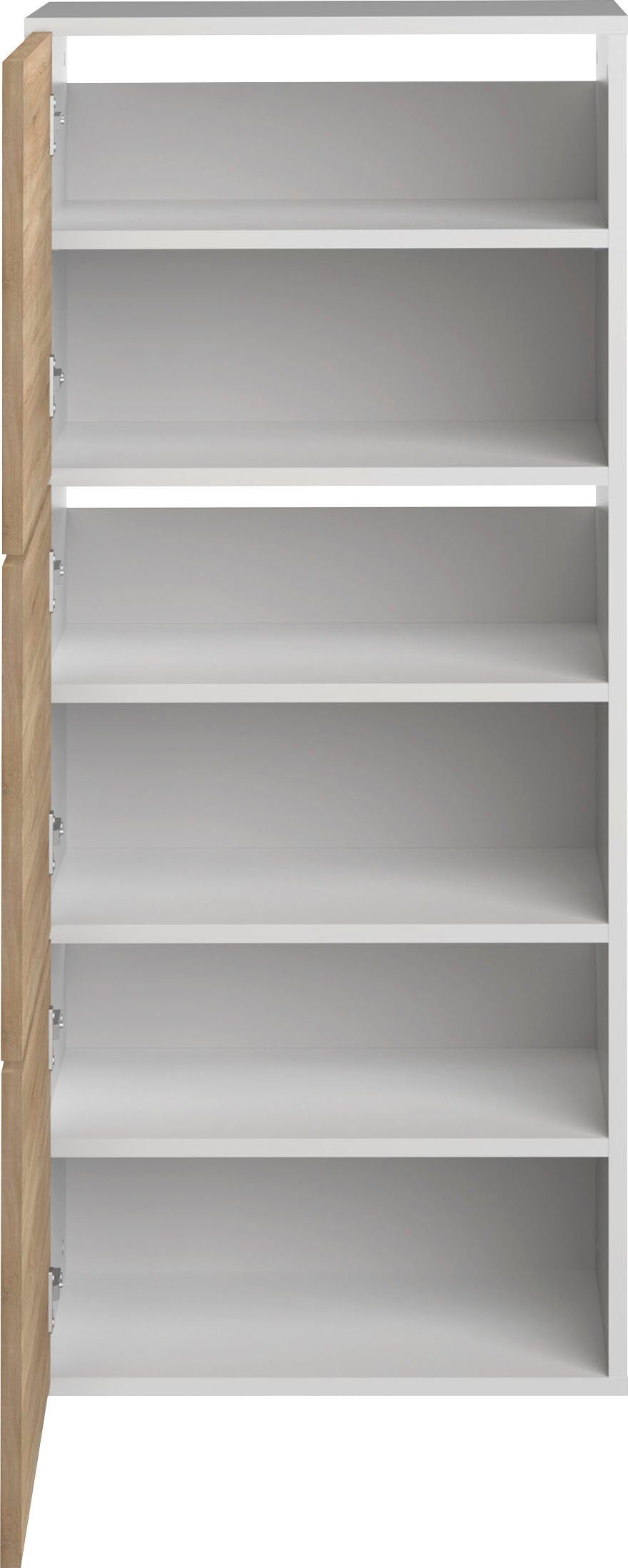 Szafka na buty biało-dębowa z licznymi półkami