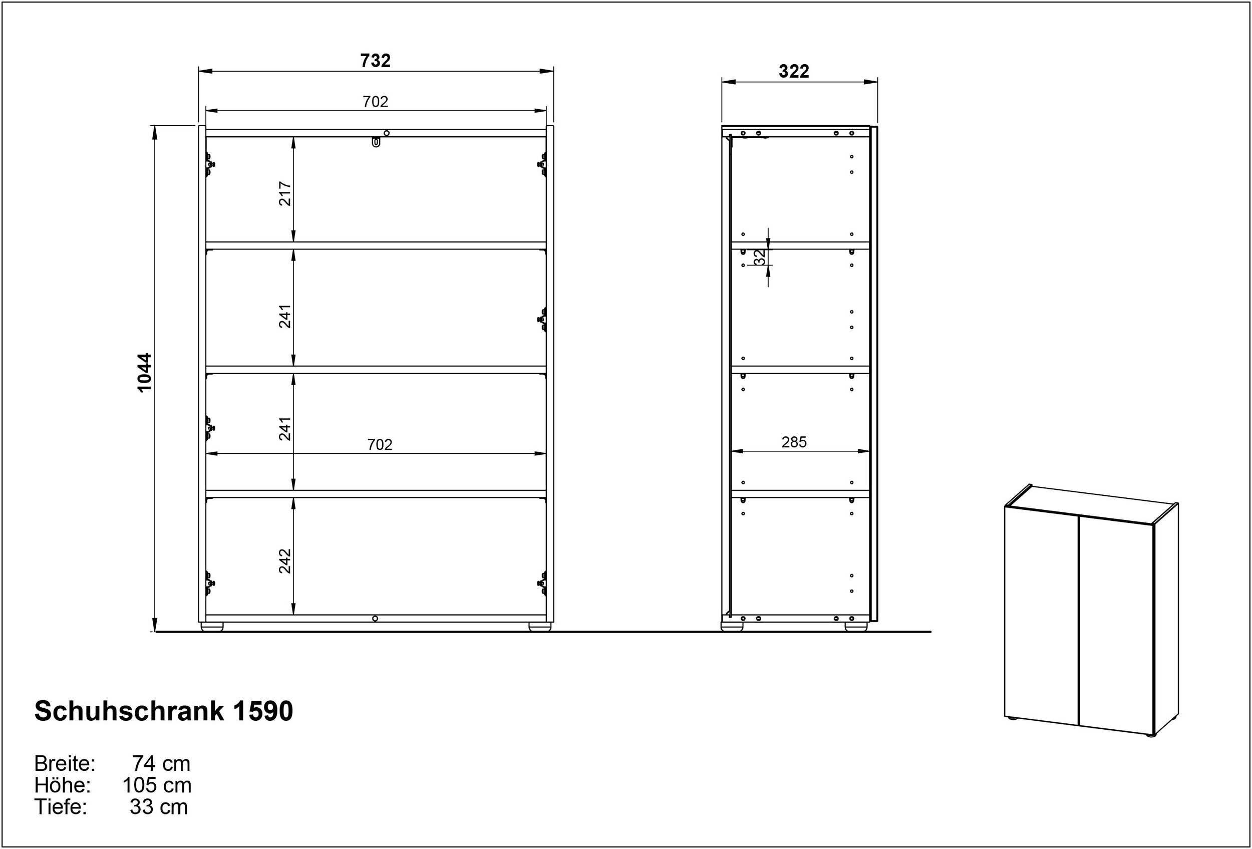 Dzięki tej szafce na buty „Alviano” firmy GERMANIA Twoje ulubione buty posłużą dłużej, chroniąc je przed czynnikami zewnętrznymi, takimi jak kurz i światło. Jednocześnie zaprowadzi porządek w Twoim przedpokoju. Regulowane półki pozwalają na dopasowanie szafki do Twoich potrzeb. Aby chronić szafkę, krawędzie wykończono tworzywem ABS – niezwykle wytrzymałym tworzywem sztucznym, które zapobiega uszkodzeniom spowodowanym uderzeniami. Szafka jest podparta na plastikowych ślizgaczach, które zapobiegają zarysowaniom podłogi. Maksymalne obciążenie wynosi około 45 kilogramów. Produkt wyprodukowany w Niemczech. Dzięki nowoczesnemu wzornictwu ta szafka na buty harmonijnie komponuje się z wieloma stylami wnętrz.