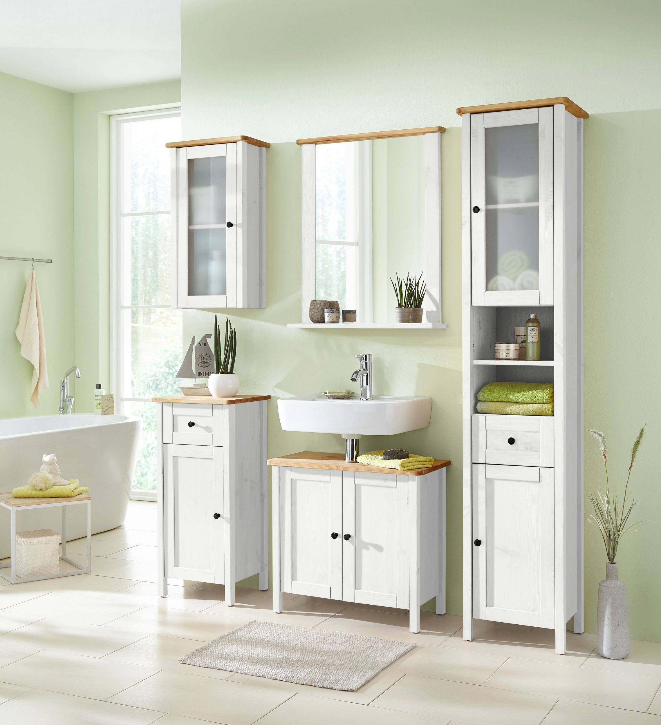 Napisz pierwszą opinię o „Szafka pod umywalkę sosnowa, biała z miodowym blatem”