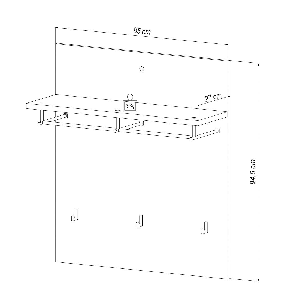 Odkryj wieszak na ubrania „Milan” marki HBZ o nowoczesnym designie i harmonijnej atmosferze. Wieszak ścienny w przytulny sposób wzbogaci przedpokój lub korytarz – jest równie funkcjonalny, co estetyczny. Dzięki powierzchni pokrytej melaminą panel ścienny jest wyjątkowo wytrzymały i trwały. Panel jest wyposażony w półkę na kapelusze, drążek na ubrania i haczyki na ubrania, zapewniając wystarczającą ilość miejsca do wieszania płaszczy, kurtek i akcesoriów. Dzięki kompaktowym wymiarom panel ścienny oferuje dużo miejsca do przechowywania, nie zajmując zbyt wiele miejsca w przedpokoju. Doświadcz doskonałego połączenia jakości i nowoczesnego designu dzięki wieszakowi na ubrania „Milan” od HBZ.