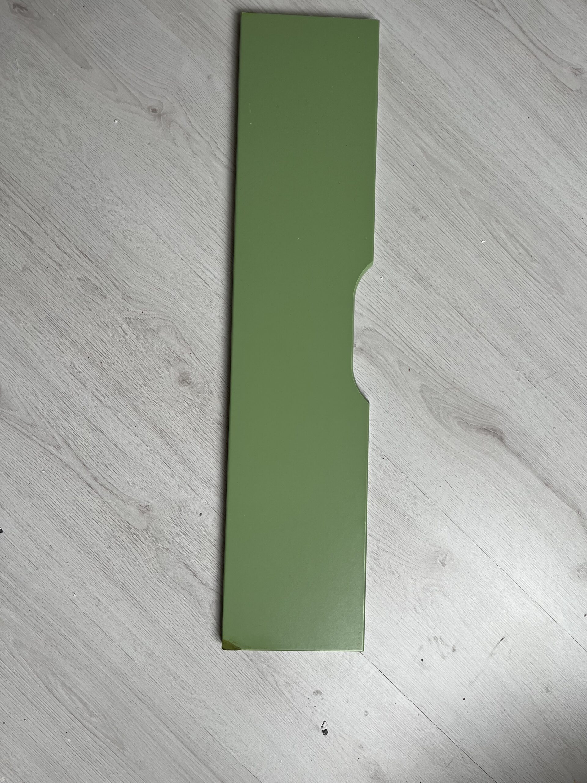Solidna sosna FSC®, przód MDF (materiał drewnopochodny). Malowane na bladozielono.